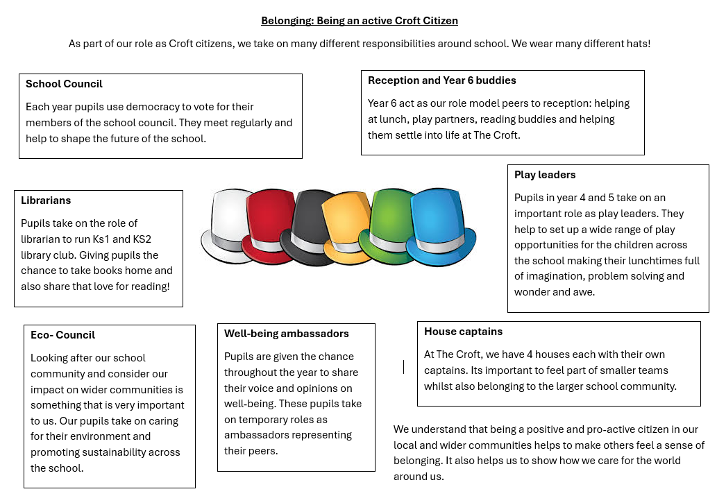 Here at The Croft Primary School, we help to students to support the wider community. We encourage them to show empathy for others, to value the difference one person can make and that each act of kindness is a step towards helping others. It is important that our students beome well-rounded citizens whom understand the role they play in developing a respectful, supportive community. We are incredibly proud to support our local and national community through a wide range of iniatives and fundraising. We understand that together, we can make a difference!