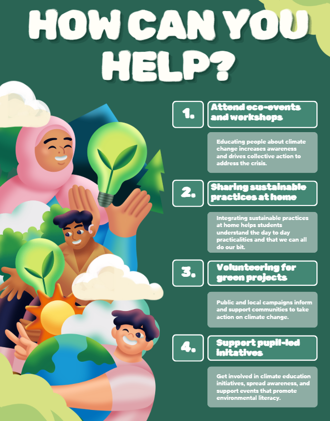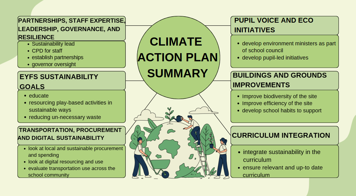 Sustainability is a vital part of our school future development. We understand the potential impact of climate change and that we can all do our bit to help by promoritng and activitley fing ways to live and learn more sustainably. As part of our commitment to supporting sustainability, we have formulated a school Climate Action Plan.